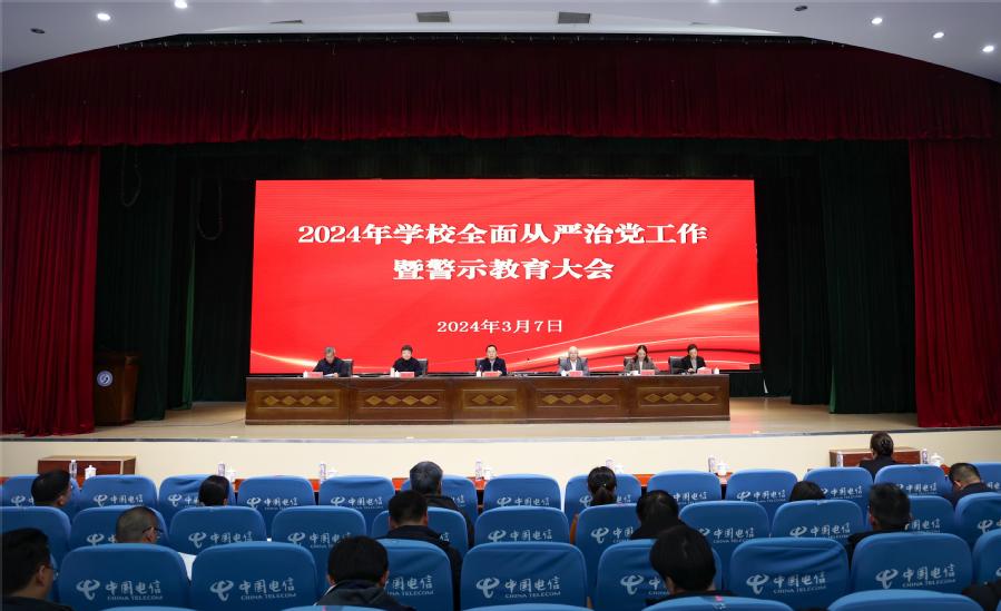3月7日下午,学校2024年全面从严治党工作暨警示教育大会在图书馆多功能报告厅举行。全体校领导、党委委员、纪委委员、中层干部等参加大会,会议由党委副书记、校长张维主持。